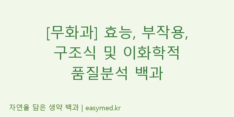 본 포스팅의 내용은 식품의약품안전처 공공데이터를 기반으로 자동 생성된 참고용 정보입니다. 생약 및 한약재의 효능이나 부작용은 개인의 체질과 상태에 따라 다르게 나타날 수 있습니다. 질병의 진단, 예방 및 치료를 위해서는 임의로 복용하지 마시고 반드시 한의사, 의사, 약사 등 전문가와 상담하시기 바랍니다. 본 블로그는 정보 활용에 따른 결과에 대해 법적인 책임을 지지 않습니다.